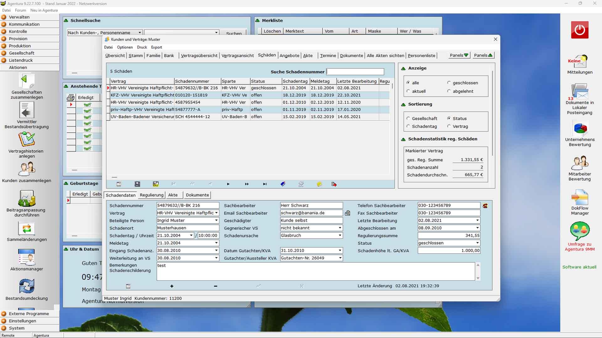 Wir können aber mit Stolz behaupten, dass Agentura 9MM über einen enormen Funktionsumfang verfügt und so gut wie jeder Verarbeitung von Daten, welche wichtig für Versicherungsdienstleister und Makler sind, eine optimierte Funktion gegenüberstellt.